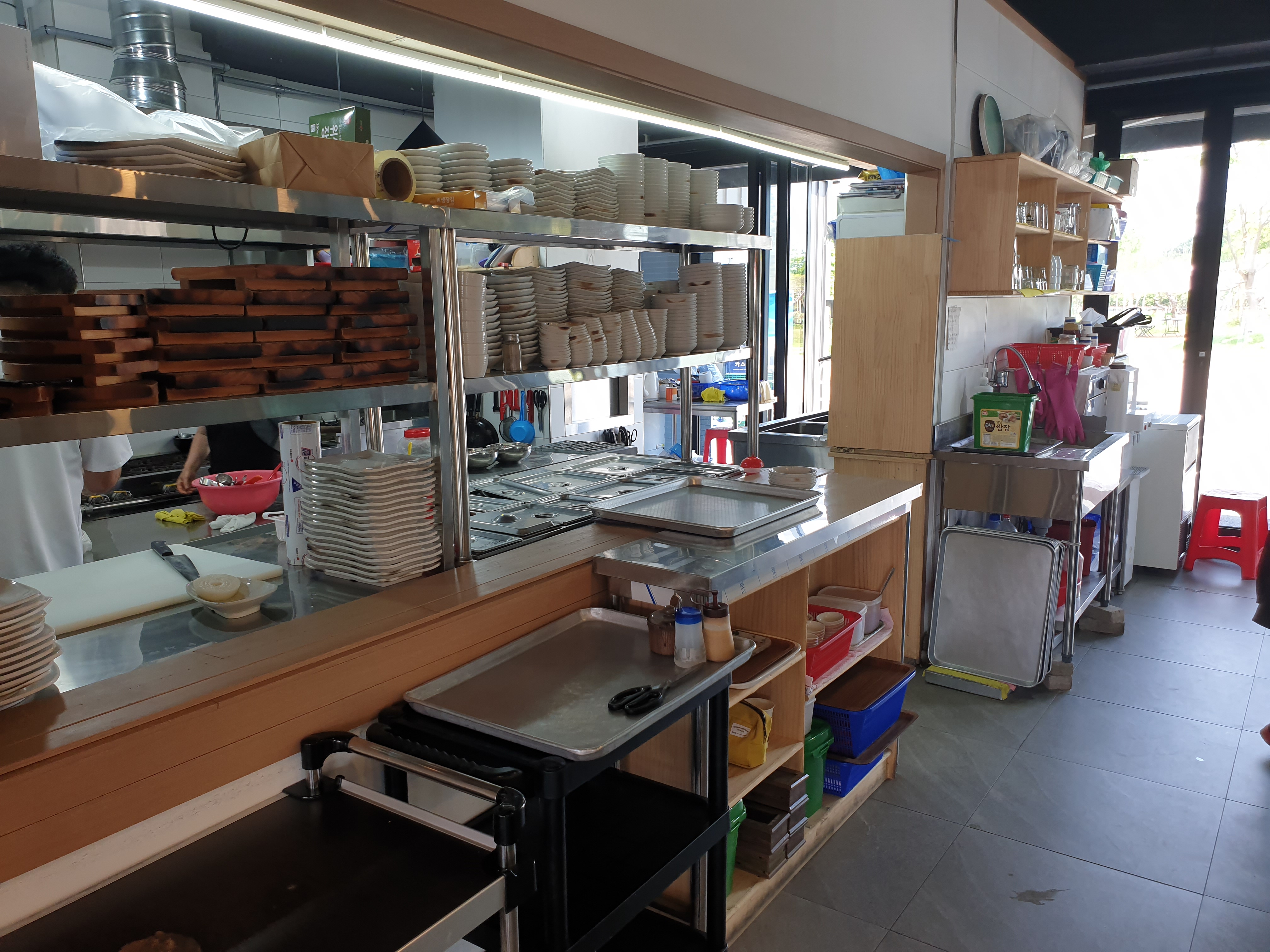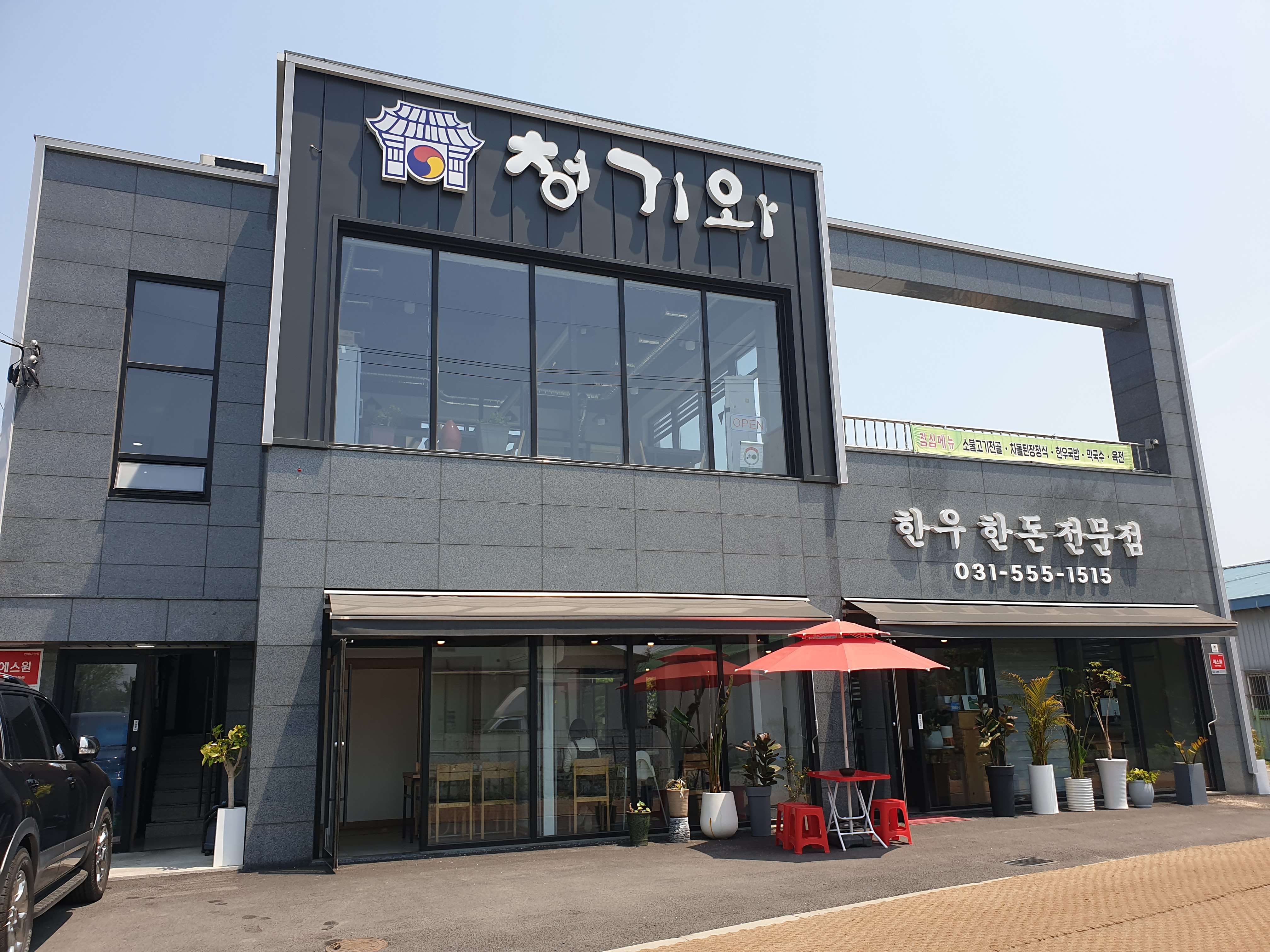 외관 뒤쪽에 주차장이 넓게 있습니다