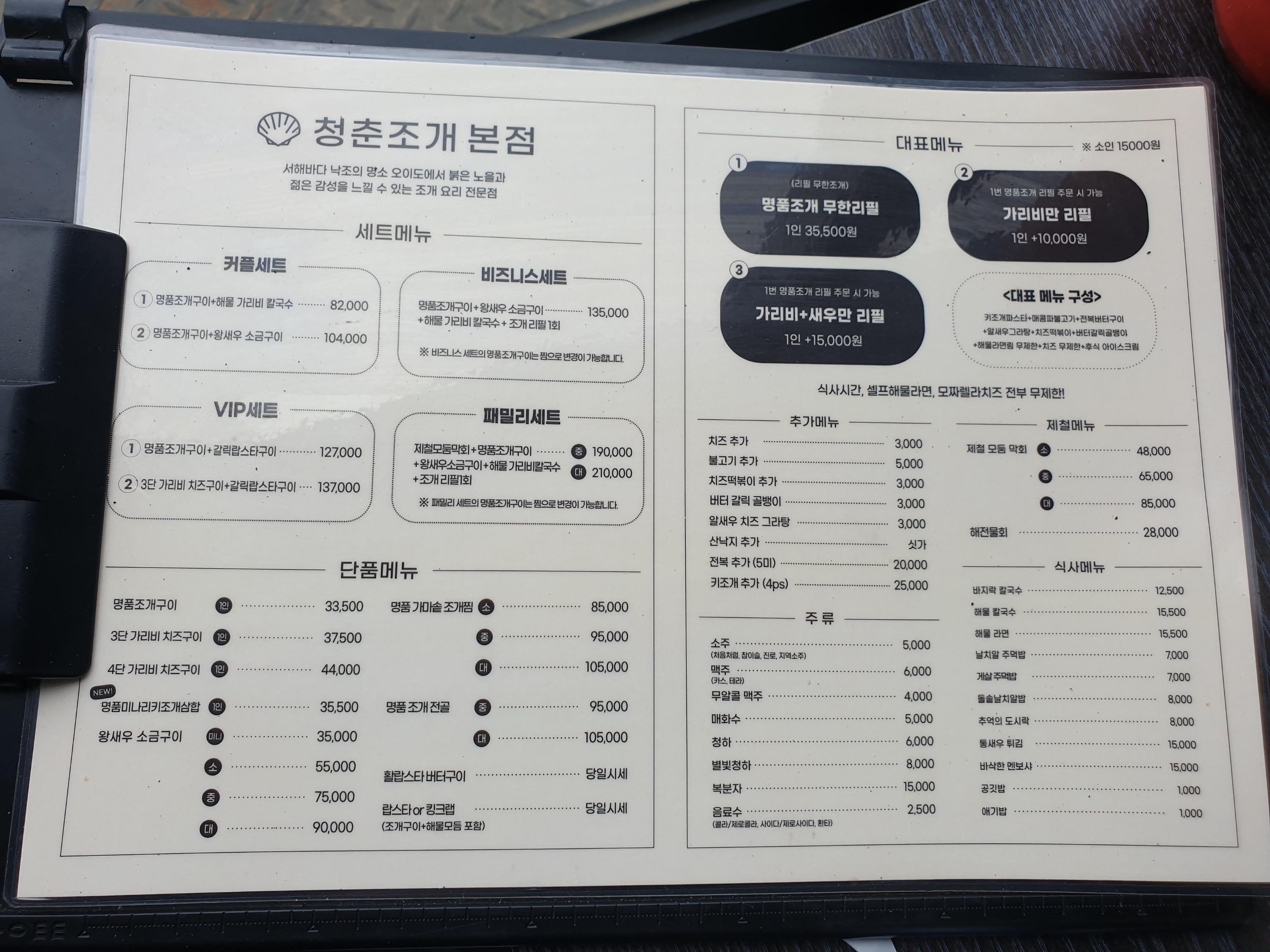 조개구이 무한리필, 활랍스터 버터구이, 삼합한상 등 있네요