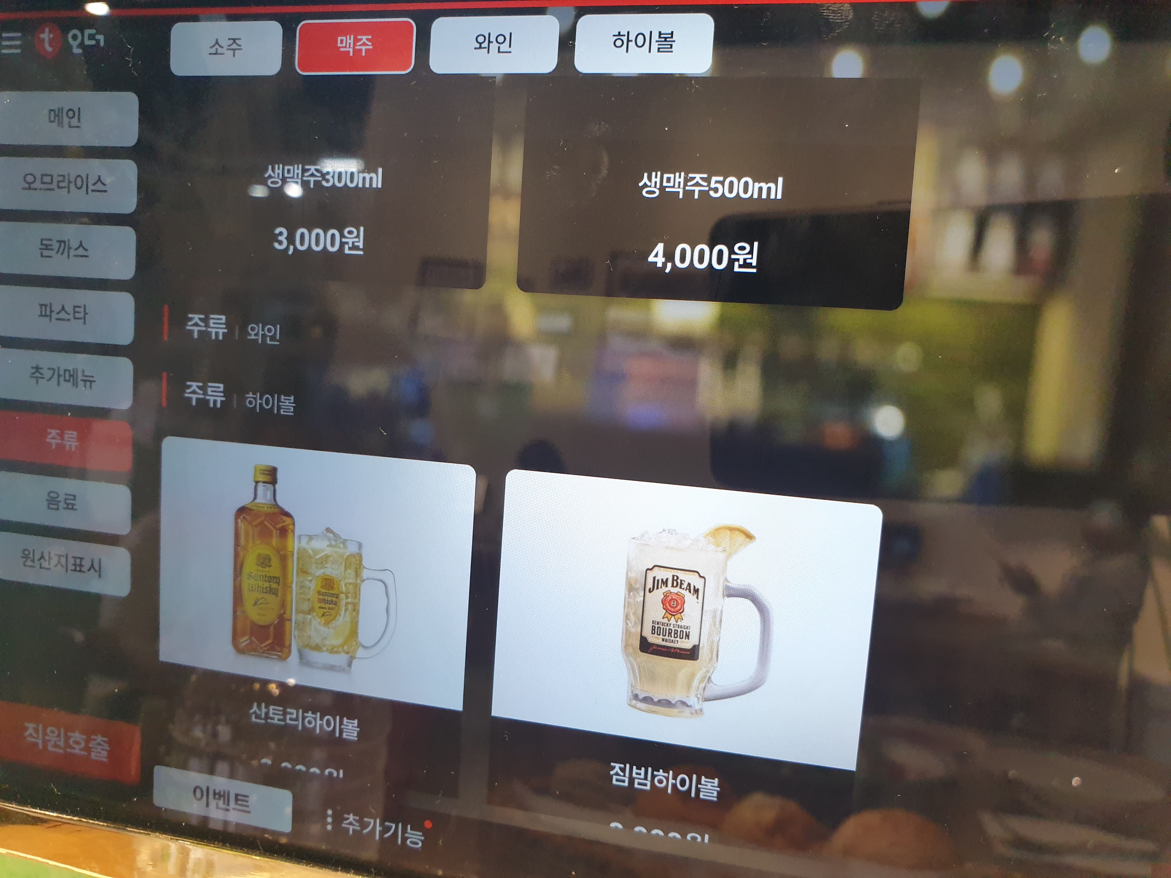 메뉴는 티오더로 주문을 하는 구조입니다